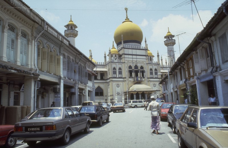 Sultan Mosque in Kampong Glam, 1987. Ministry of Information and the Arts Collection, courtesy of National Archives of Singapore (Media - Image no. 19990001289 – 0016).