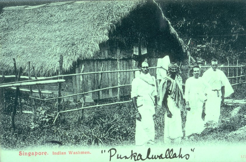 National Archives of Singapore, Indian Laundry Men or Dhobies in Singapore, 1900s, photograph. (From National Archives of Singapore, Media - Image no. 19980007379 - 0033) ↩