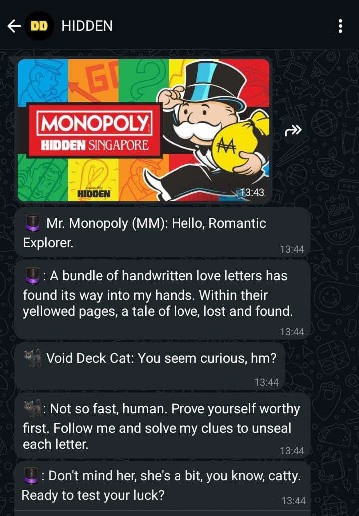 Led by Void Deck Cat, the game’s in-house mascot and AI chatbot, players receive clues that bring them on quests around Singapore. As they explore different locations, players can text their answers to the cat or ask for hints if they are lost.