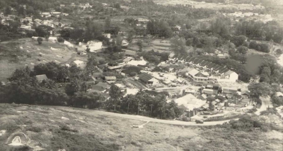 British Royal Air Force, Aerial View of Holland Village with a Chinese Cemetery in the Foreground, 2 September 1958, photograph. (From British Royal Air Force Collection, National Archives of Singapore, accession no. 188736) ↩