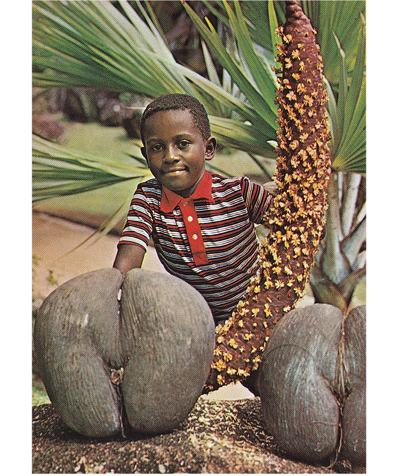 By the time Western observers first encountered it in 1563, the double coconut was already highly esteemed for its medicinal properties in localities along the coastlines of the Indian Ocean, and as far afield as Indonesia, China and Japan.4 Yet their means of reproduction remained a mystery. Because they also washed up regularly on the shores of Sri Lanka and the Maldives during the monsoon season, these nuts were widely believed to grow on mythical submerged trees, a persistent legend that resulted in the moniker “coco-de-mer”, or coconut of the sea.